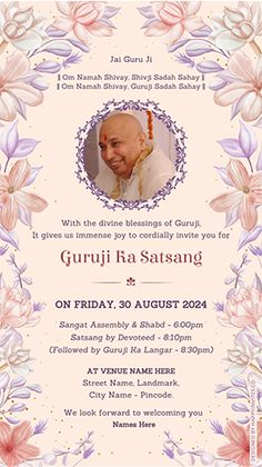 Guruji Satsang Invite Invitation Template Floral Wallpaper Phone