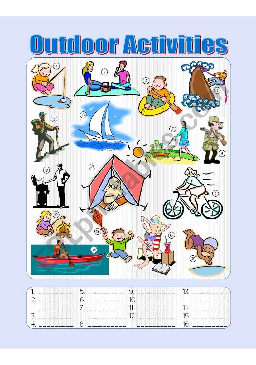 Outdoor Activities 1 ESL Worksheet By Monicablt