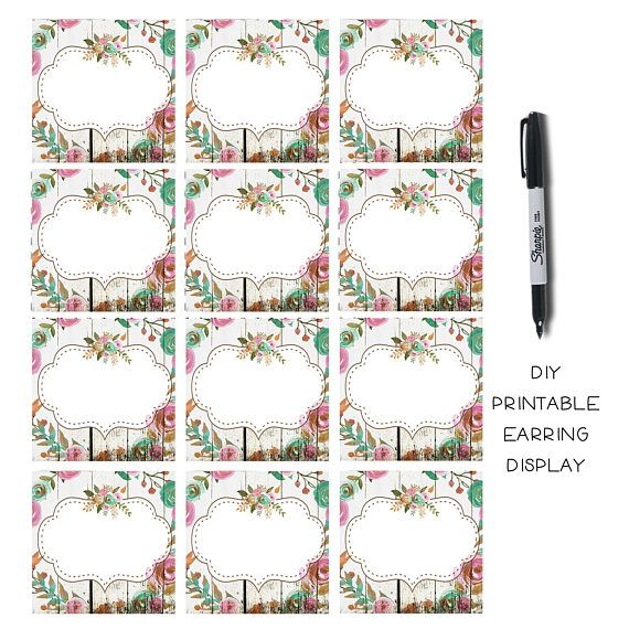 DIY Printable Earring Card Printable Earring Sheet Earring Display