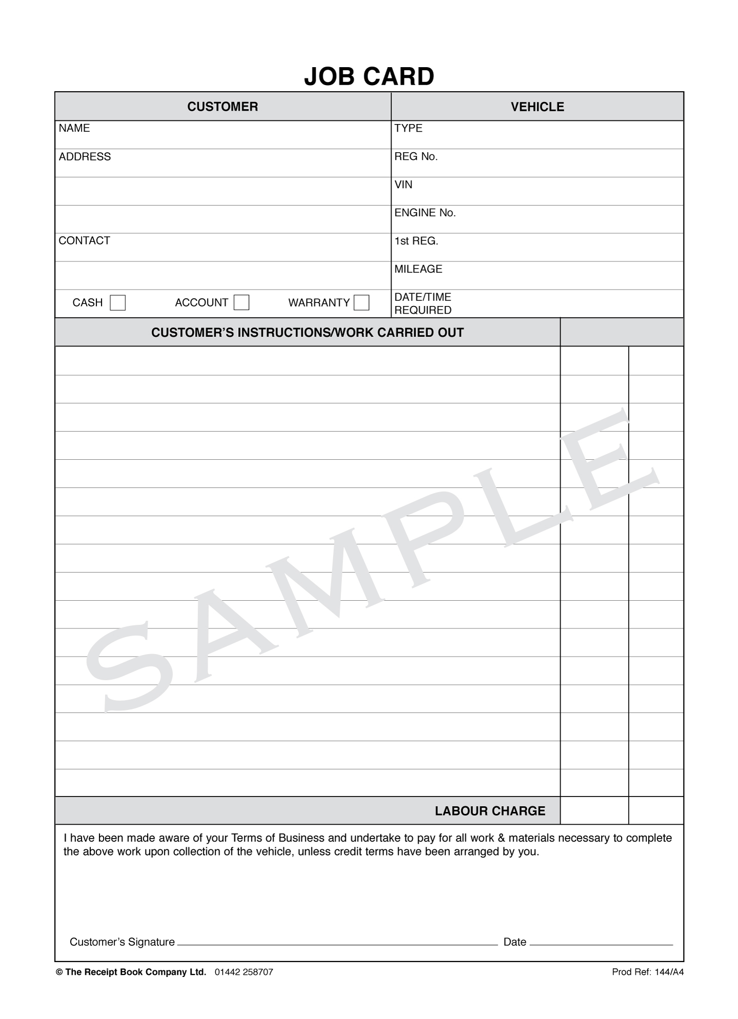 Job Card Template In Word And Pdf Formats